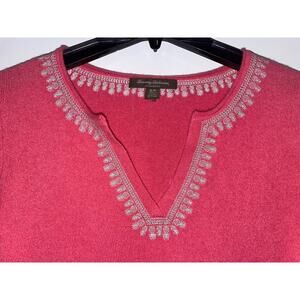 Tommy Bahama size Small Cashmere Pineapple Embellished Pullover V Neck Sweater