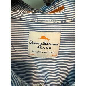 Tommy Bahama size XXL blue & white striped button down shirt in excellent condition. Chambray material. Measures 26” from armpit to armpit and 30 1/2” long.
