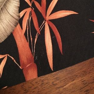 Very cute Tommy Bahama sleeveless top. Size 2. It zips up in the back and has a nice tailored looking fit. There are a couple of very minor snags on the bottom but they kind of blend in with the floral pattern. Great shades of orange and green on a black background. This top is perfect for a summer night out or to wear with your favorite dress slacks and blazer. Willing to negotiate -- selling clothes to buy a house.