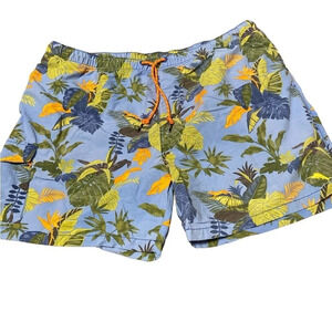 Tommy Bahama blue shorts/ swimming trunks. Blue with greenery and a few birds.