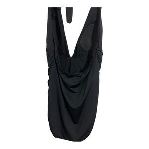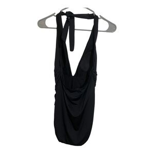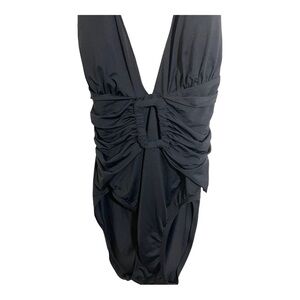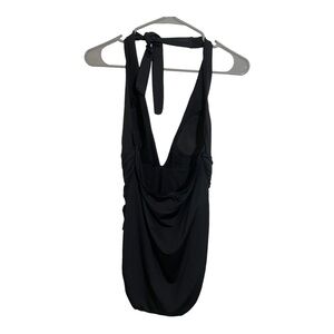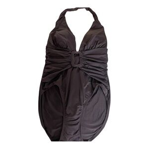 Tommy Bahama V-Neck plunge one piece swimsuit. Black size 8 halter neckline buckle front design.