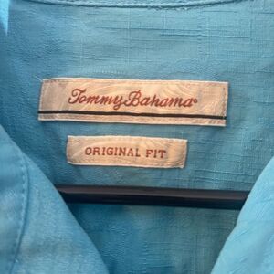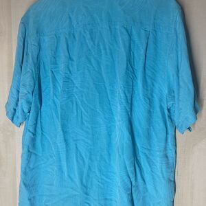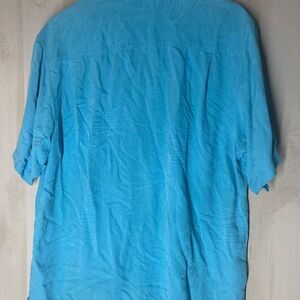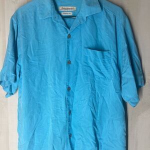 Tommy Bahama 100% silk short sleeve turquoise button front shirt, medium