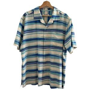 Tommy Bahama Blue and Cream Watercolor Striped Silk Shirt Men's Size XL