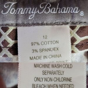 Tommy Bahama Capri Pants 12 Brown Mod Geometric Print Stretch Cotton Resort
