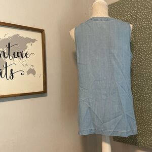 Tommy Bahama Chambray Light Blue Lace Front Sleeveless Tunic Blouse