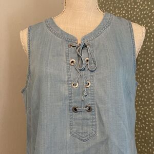 Tommy Bahama Chambray Light Blue Lace Front Sleeveless Tunic Blouse Size Small