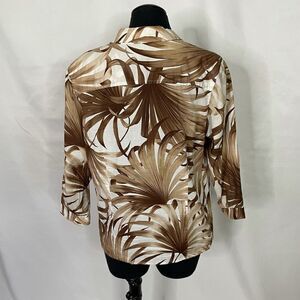 Tan 100% Cotton Tommy Bahama Palm Frond Button Down Blouse.