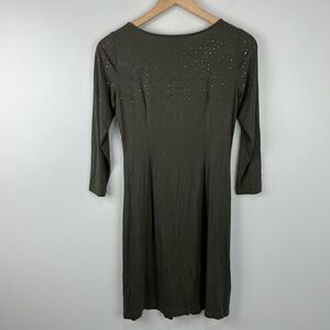 Tommy Bahama Embellished Dark Green L/S Swing Dress XS