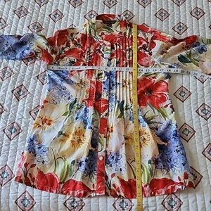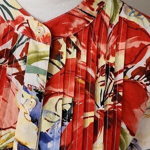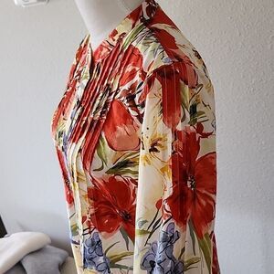 Tommy Bahama Floral 3/4 Long Sleeve Silk Cotton Blend Blouse