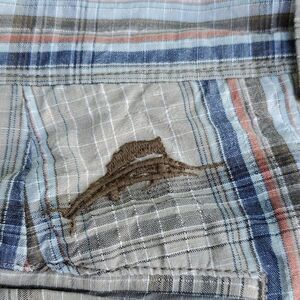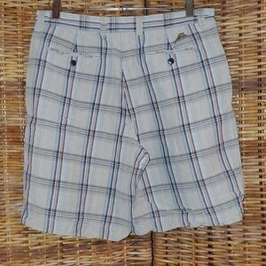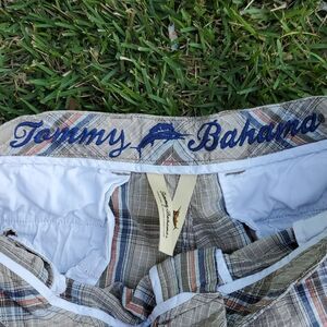 This is a pair of Tommy Bahama shorts. The fabric is a blend of linen and silk.