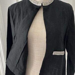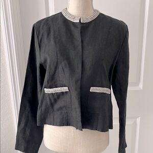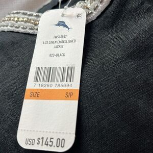 Tommy Bahama Lux Linen Embellishments Elegant Black Women's Short Jacket NWT