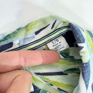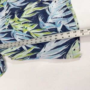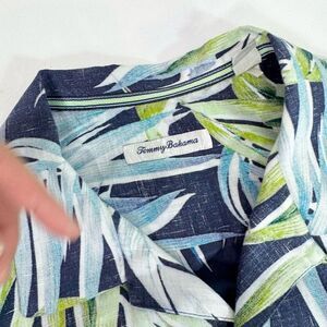 Tommy Bahama Shirt Men Large Blue Linen Floral Hawaiian Button Up Tropical Beach