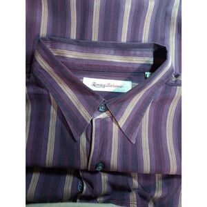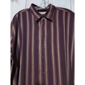 Tommy Bahama Shirt Men's Extra Large 100% Silk Purple Button Front Long Sleeve
