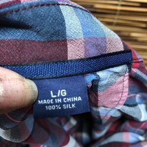 Tommy Bahama Size Large (L) 100% Silk Red White and Blue Plaid