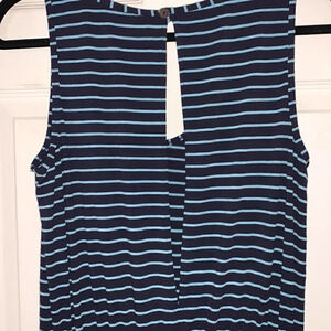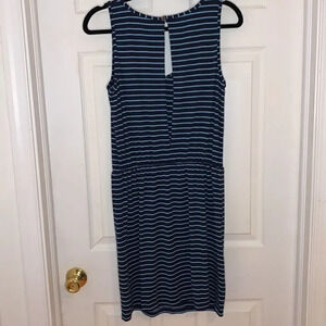 Like new. Tommy Bahama blue striped dress with open back and elastic tie waist.