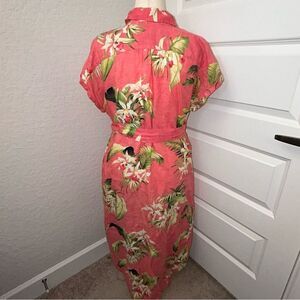 Tommy Bahama Tropical Floral Print Button Down Belted Linen Midi Dress