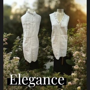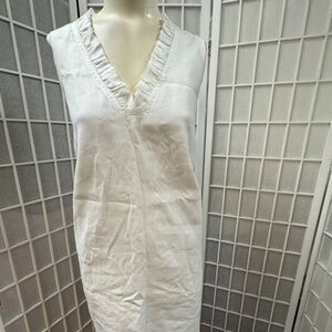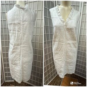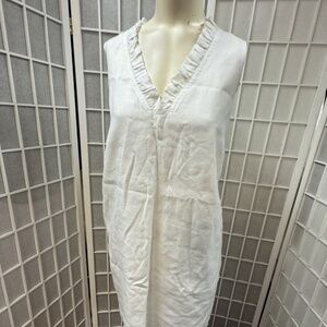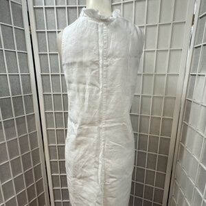 This Tommy Bahama women's dress is a stylish and comfortable option for the summer and spring seasons. Made from 100% linen, it is perfect for travel, casual outings, or workwear. The knee-length, sleeveless design in a solid white color adds a touch of elegance to the sundress. The funniest turtleneck detail adds a unique flair to this versatile and high-quality piece from the Tommy Bahama brand.
