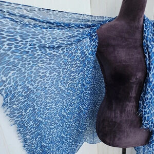 Tommy Bahamas Women Shawl Wrap Poncho Open Front Cape BLUE Leopard Lightweight