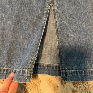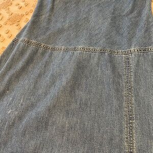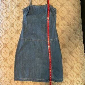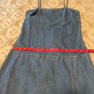 Adorable Tommy Hilfiger denim jumper/sundress in nice gently worn condition from smoke free home. Spaghetti straps, darts at chest, top stitching details, front, towards side vent at hem. Zipper in the back. Wear with short/cap sleeve tee, etc. or wear it alone.