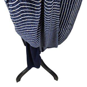 In the gentle embrace of a summer's breeze, this navy and white striped maxi dress tells tales of sunlit days and moonlit evenings. Crafted with the meticulous artistry of Tommy Girl, each stripe dances with whispers of elegance. Its flowing polyester fabric drapes gracefully, promising comfort with every step.
