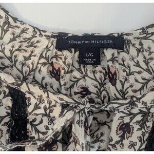 Tommy Hilfiger 100% Cotton 3/4 Sleeve Boho Peasant Blouse with lace trim LARGE