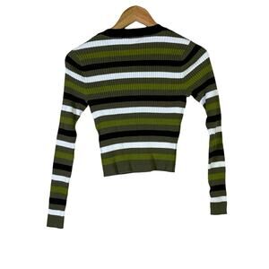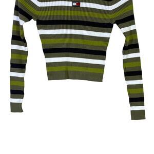 Tommy Hilfiger 100% Cotton Cropped Sweater Womens S Green Blue Striped Y2K 90s