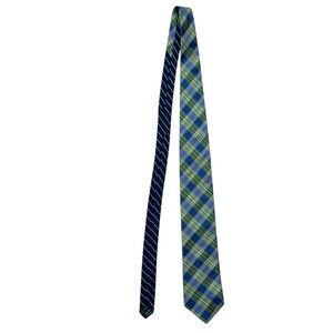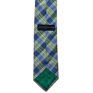 Tommy Hilfiger 100% Silk Patternblock Tie Blue/Green Plaid & Navy/White Stripe