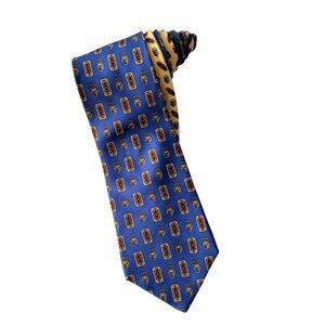 This vintage Tommy Hilfiger tie offers a sophisticated design with shield and emblem patterns in navy and yellow. Crafted from pure silk, it demonstrates quality and style, suitable for formal or professional settings.