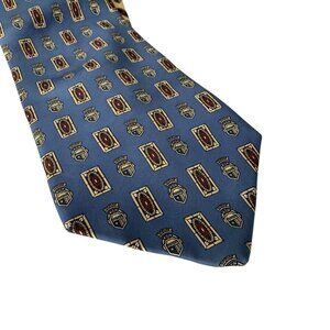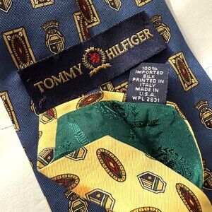 Tommy Hilfiger 100% Silk Tie Navy & Yellow Shield Emblem Design Made In Italy