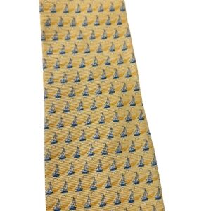 Tommy Hilfiger 100% Silk Vintage Sailboat Gold Blue Tie Evening Wear Men's