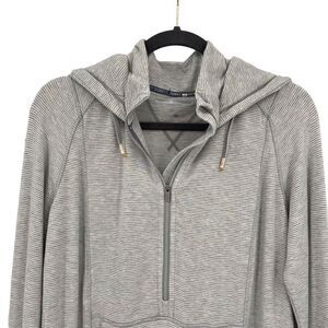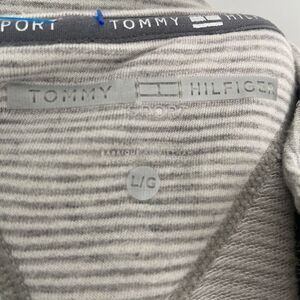 Tommy Hilfiger 1/2 Zip Pullover Hoodie Top Gray & White Pinstripes Large