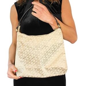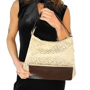 Tommy Hilfiger 12x10 Signature Handbag Creme Brown Fabric