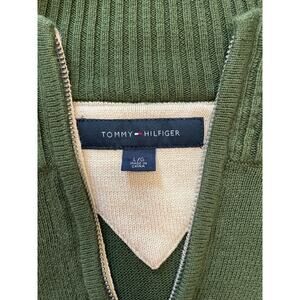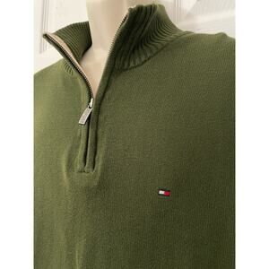 Tommy Hilfiger 1/4 Zip Olive Green Pullover,100% Cotton, Exc Cond, Men's Large