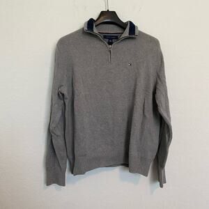 Tommy Hilfiger 1/4 Zip Pullover Sweater Gray Medium