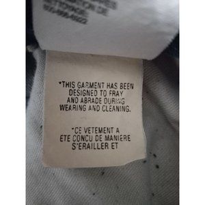 Button and snap front closure. Cotton material. Wide Leg. Light distressing. Waist 36". Rise 14". Inseam 32.5". Classic. Designed for distressing from wear and wash.