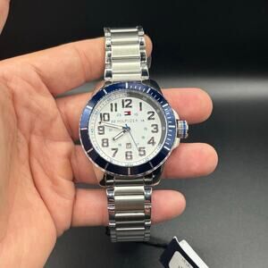 Tommy Hilfiger 1791073 Men’s Stainless Steel Blue Bezel White Dial Quartz NIBWT