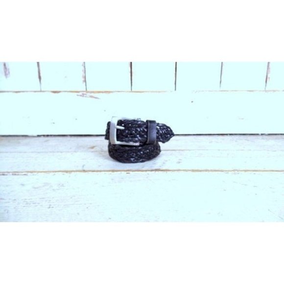 Vintage Tommy Hilfiger 1985 black woven leather belt/braided black leather TH 85 belt/32