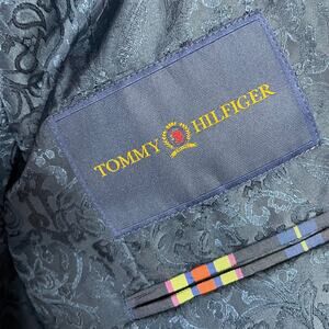 Sharp and timeless Tommy Hilfiger two-piece suit crafted from a luxurious wool–cashmere blend. This classic medium-gray suit features a two-button single-breasted jacket with a notched lapel, flap pockets, and a fully lined interior with a subtle jacquard pattern. Matching trousers feature pleated fronts, cuffed hems, and a clean tailored fit. A refined option for business, events, or everyday elevated dressing.