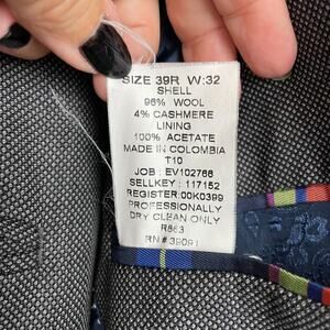 Tommy Hilfiger 2 Piece Suit Gray Wool Cashmere Classic 39R 32x29 Two Button
