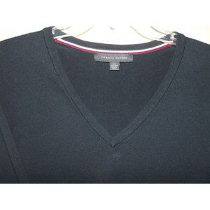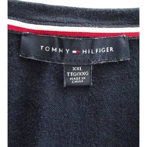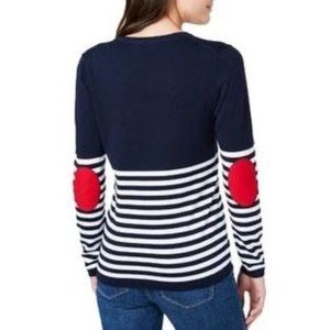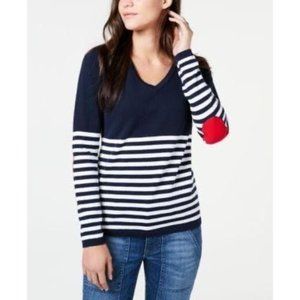 Tommy Hilfiger 2X Colorblock Patch Elbow Sweater navy blue white striped v-neck