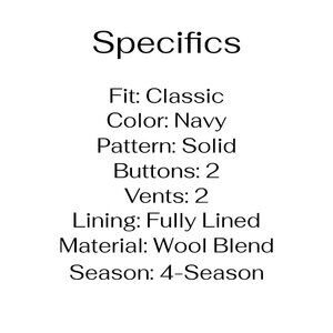 Tommy Hilfiger 38R Navy Blazer Sport Coat Jacket 2-Button Solid T889