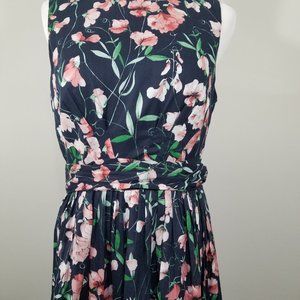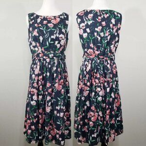 Tommy Hilfiger 50s Retro Style Boat Neck Floral Cotton Dress Belted Size 8