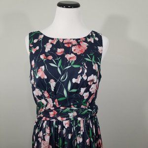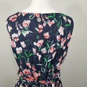 Tommy Hilfiger Womens Belted Floral Print Sleeveless Fit And Flare Dress