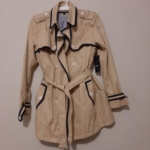 Brand new Tommy Hilfiger coat Gorgeous!! Size large 100% cotton khaki with navy blue trim BIN#00006