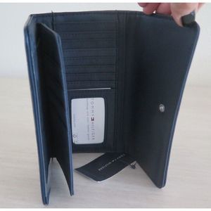 Tommy Hilfiger 69J3021 410 Navy Logo Embossed Tri-Fold Wallet Checkbook $70