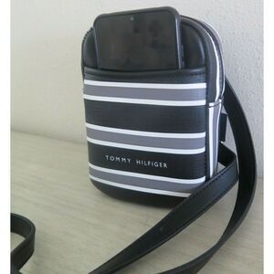 Tommy Hilfiger 69J4451 003 Black/Gray/White Striped PU Leather Crossbody Bag