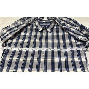 Additional features: Tommy Hilfiger Brand, 80's 2 Ply Fabric, Button-Down Casual Shirt, Plaid print, Custom Fit, Men Size XL