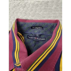 Tommy Hilfiger 80's 2 Ply Fabric Long Sleeve Button Up Shirt Sz Large Maroon 90s Look. Condition is Pre-owned. Still in really good shape. No rips, stains or tears. Take a look at the pictures (zoom in) and measurements please. Thanks for looking. Enjoy the rest of your day. Shipped with USPS First Class