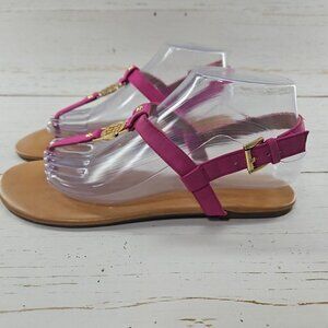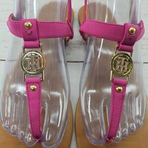 Tommy Hilfiger 8.5 Pink Faux Leather Gold Logo Thong Slingback T-Strap Sandals