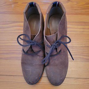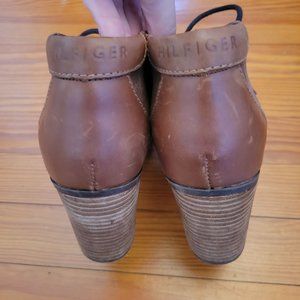 Tommy Hilfiger 8M Brown Leather Chunky Heels Lace Up Booties TW DUFF